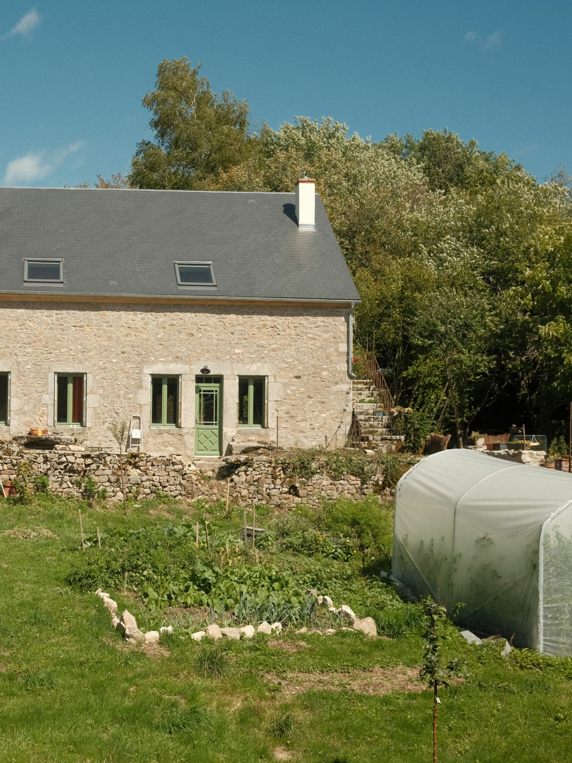 Un des objectifs de ce projet est de s’intégrer dans son environnement architectural, écologique et économique. La rénovation du lieu a été faite en respectant au mieux les anciens bâtis à l’aide de matériaux bio-sourcés et/ou de récupération.