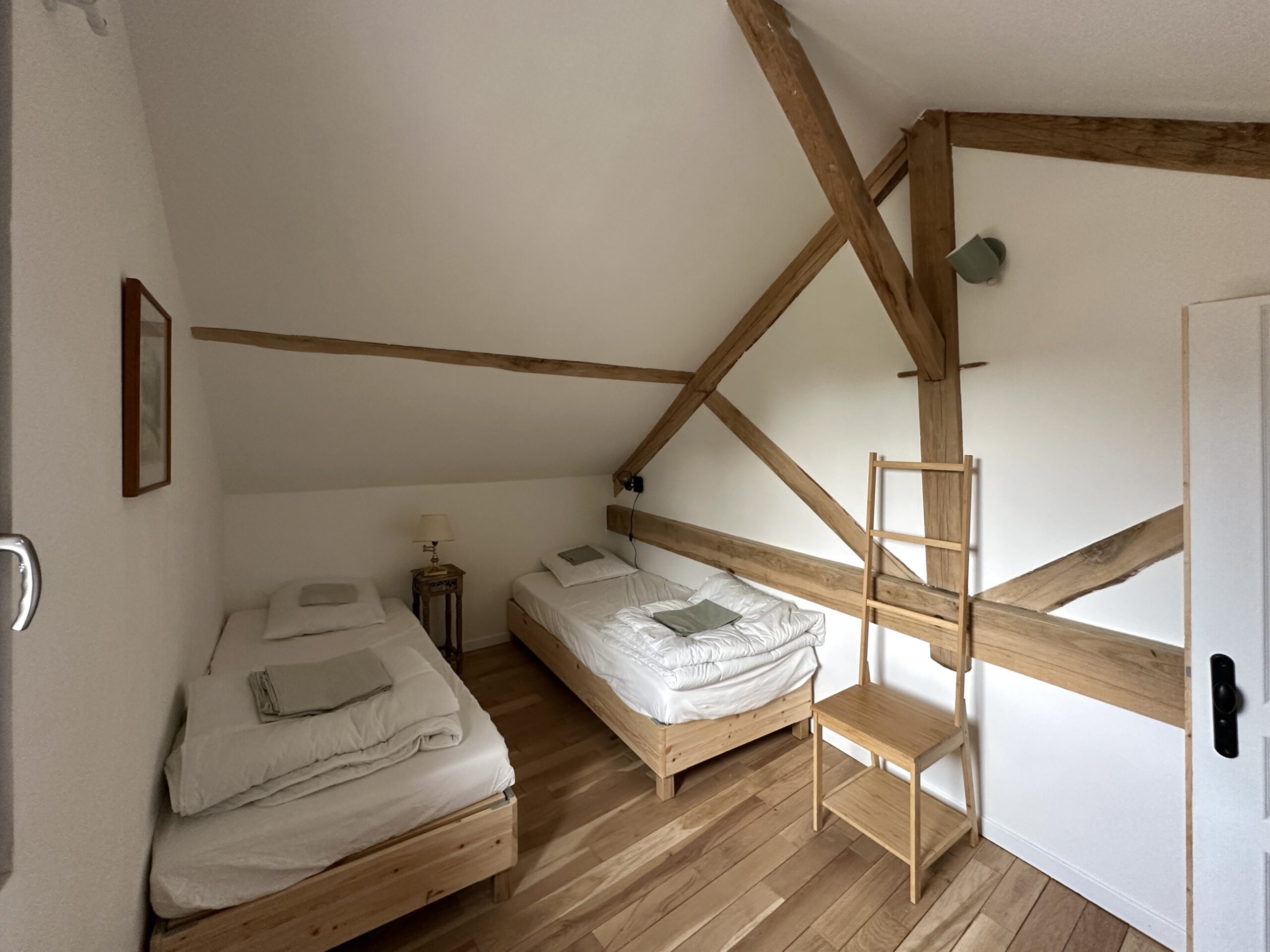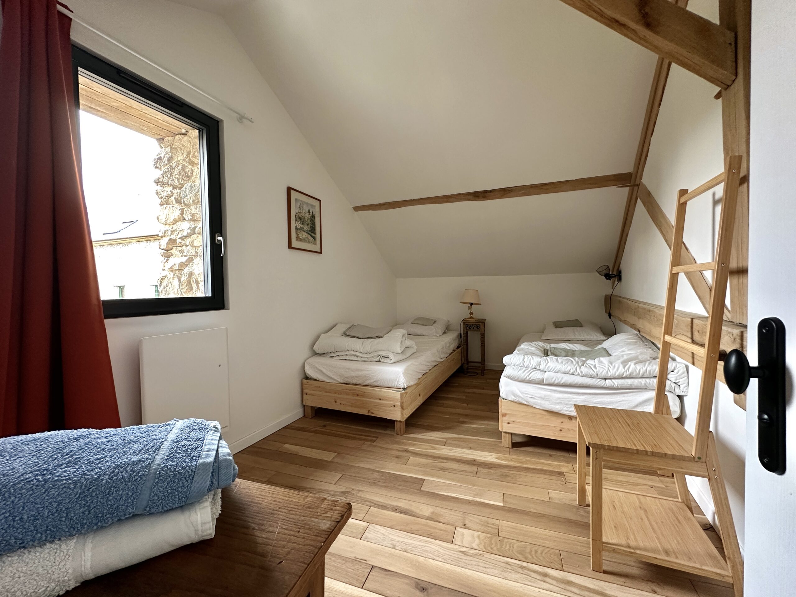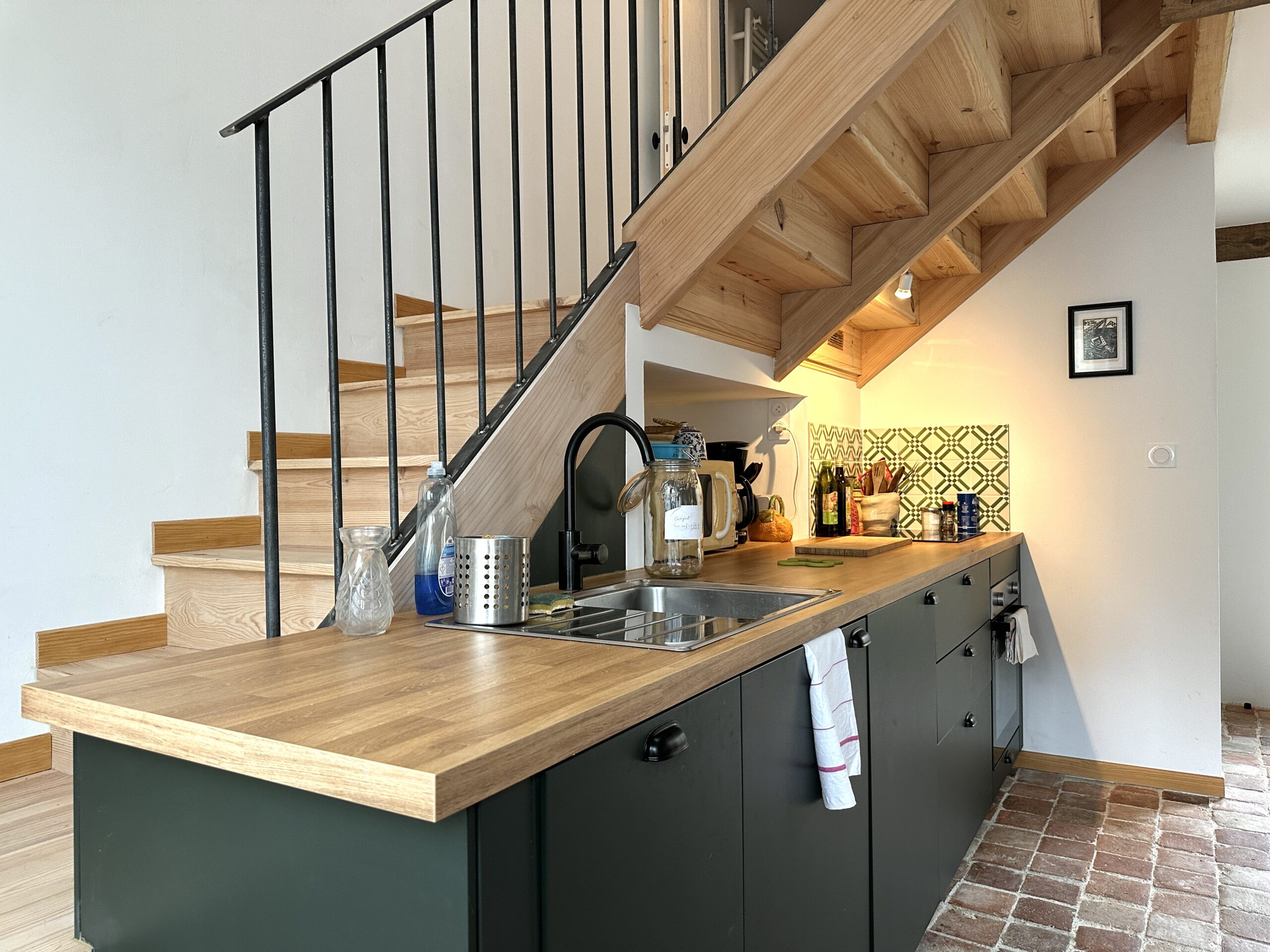 Pour s’inscrire dans une démarche environnementale, nous avons rénové une grange à l’aide de matériaux bio-sourcés et/ou de récupération pour la transformer en gîte. Le gîte est isolé, son électricité provient en partie de panneaux photovoltaïques et le raccordement au puit (pour alimenter le lave-linge, les WC et l’eau du jardin) nous permet de réduire nos besoins en eau potable. De plus, une borne de recharge de véhicule électrique rapide permet de favoriser le transport bas-carbone.